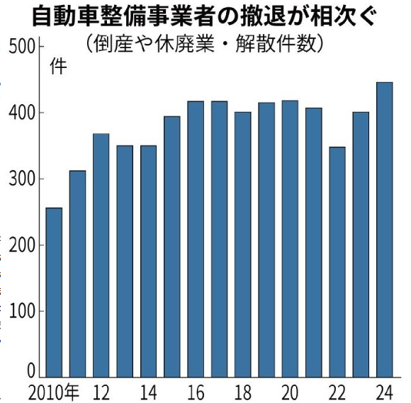 現在、人手不足を理由に事業の廃業に追い込まれる事業者が増えており、整備士の育成は業界にとって喫緊の課題です。日本自動車整備振興会連合会のデータによると、2011年には約35万人いた自動車整備士の数は、2023年度には約33万人まで減少しました。これは3年連続の減少であり、今後もこの傾向は続くと予測されています。